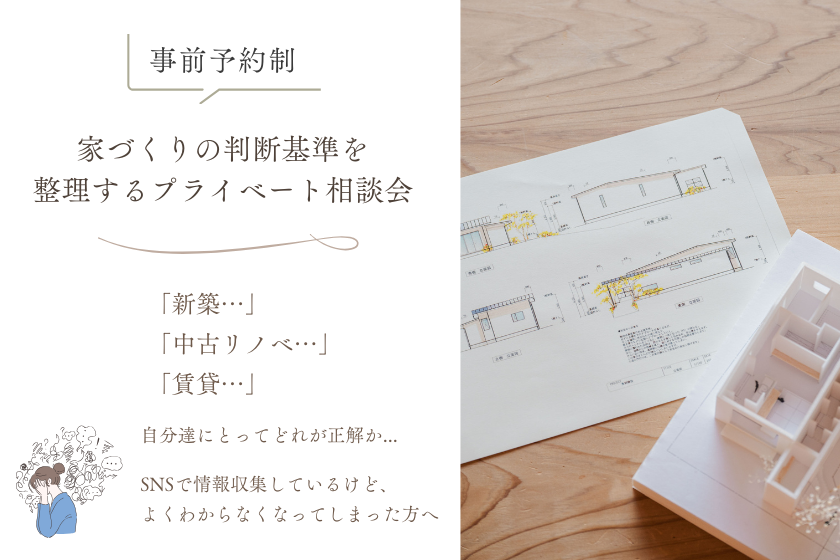 【新築・中古リノベ・賃貸】どれが正解?迷える方のための「家づくり判断基準」を整理するプライベート相談会